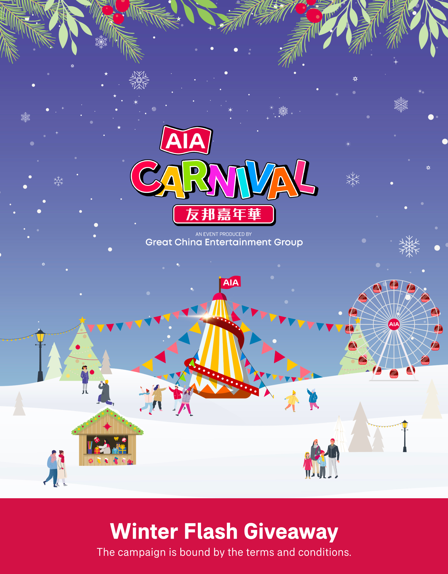 Winner will receive two “AIA Carnival” tickets (Tickets do not include any tokens), valued at HK$180: