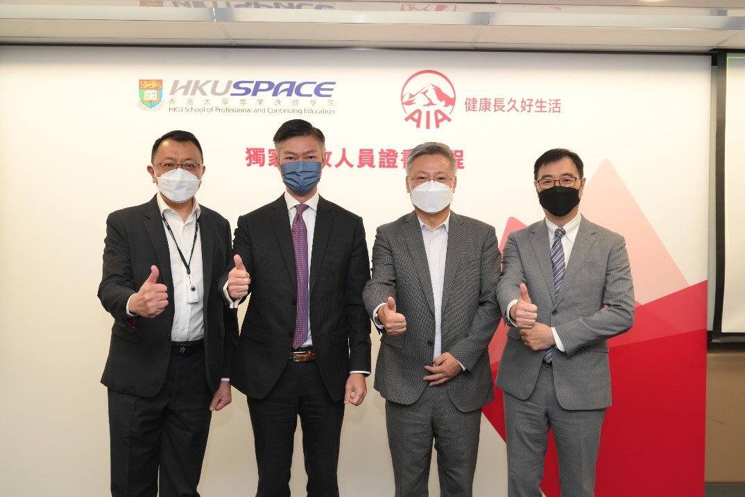 AIA Hong Kong announced an exclusive collaboration with HKU SPACE and four professional organisations, including The Chartered Insurance Institute Hong Kong Limited (CII), The Institute of Financial Planners of Hong Kong (IFPHK), FQ Education Academy (FQEA) and Hong Kong Dietitians Association Limited (HKDA), to design a series of unique executive certificate courses. The curriculum will continuously enrich AIA Premier Advisers' professional knowledge, help them customise comprehensive protection solutions to address customers' needs and become their lifelong partners. Launched earlier this year, the AIA Premier Adviser programme embraces "customer-centricity" principle, enabling financial planners to leverage a range of digital tools to help customers identify their needs and protection gaps, provide them with relevant information and advise them on appropriate solutions, and stand hand-in-hand with customers to live Healthier, Longer, Better Lives.