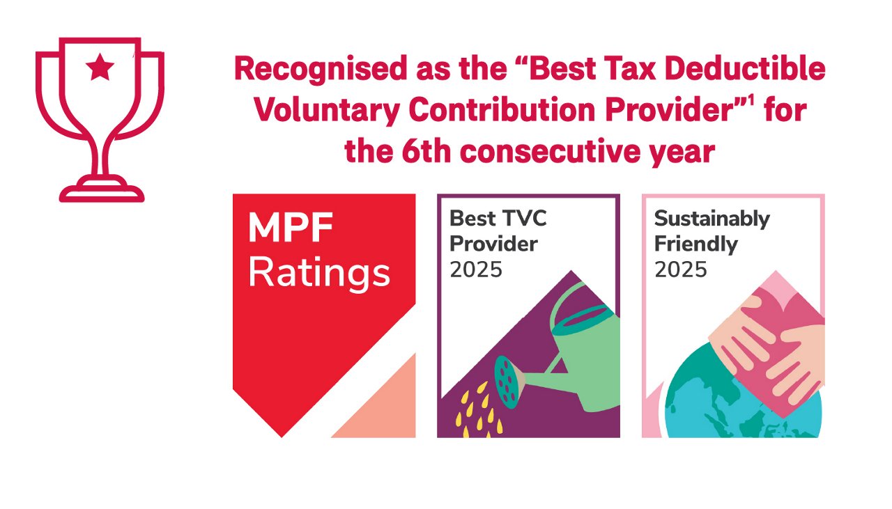 The end date for the assessment period of the above awards is 31 December 2024 and the awards are for reference only. The ratings and awards are given on the basis of MPF Ratings' assessment criteria. Assessment criteria include, but are not limited to, investment performance, scheme governance, fund choice, administration and management, financial education, and use of applied technology, Assets Under Management, ease of use of online platforms, contribution payment methods and ease of use, and promotion of environmentally friendly measures, etc.