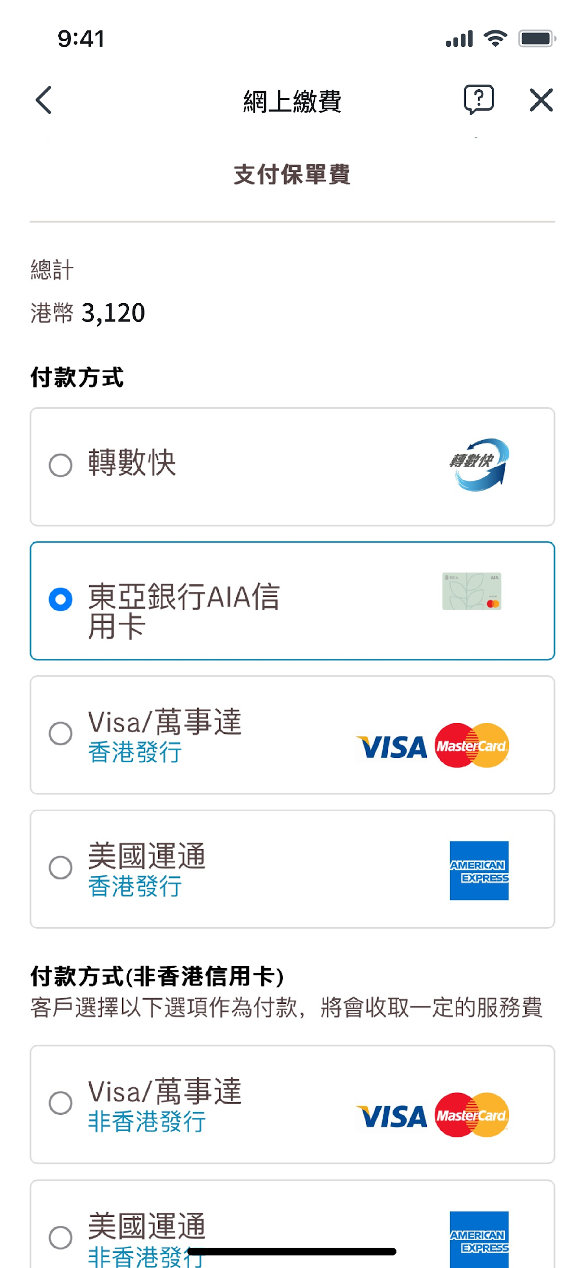 選擇你的信用卡選項,並填寫信用卡資料以付款