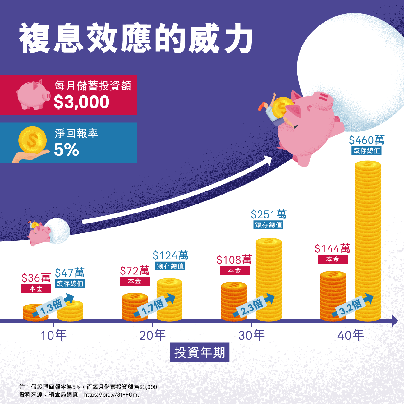 * 積金局網頁,「甚麼是複息效應?」:https://bit.ly/45SQXWD